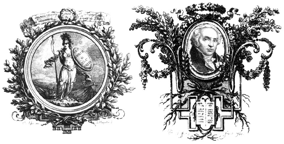 1. Portrait of De La Borde "à la Lyre," engraved by Masquelier after Denon in four states, viz.: Eau-forte, unfinished proof, finished proof before "date" and finished proof after "date." Also a portrait of Morcau.