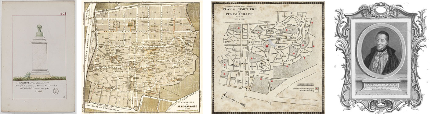 Abraham Louis Breguet's final resting place is Père Lachaise Cemetery, Paris (11ème Division)—west of the Casimir Périer Roundabout inside the triangle bordered by Chemin Talma (to the north), Chemin Méhul (to the east) and Chemin Denon (to the west). Le véritable conducteur aux Cimetières (1830, page 101) regarding Breguet's tomb…