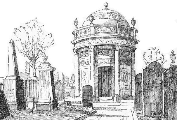 Père Lachaise Cemetery Tomb of Breguet (watercolor by Aristide-Michel Perrot, 1793–1879 for the city of Paris)