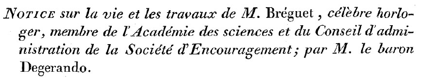Nous rendons hommage, enpassant, aux manes de Breguet, plus encore pou la douceur de son caractère et le charme de son commerce, que pour le génie qu'il deploya dans l'art de suivre avec exactitude la marche du temps, exactitude dòntm nos montres sont là pour faire encore foi sur sa tombe.