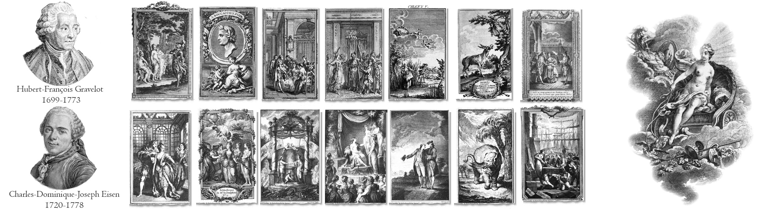 The plates are by Eisen, Moreau, Boucher, Gravelot, Monnet, etc.