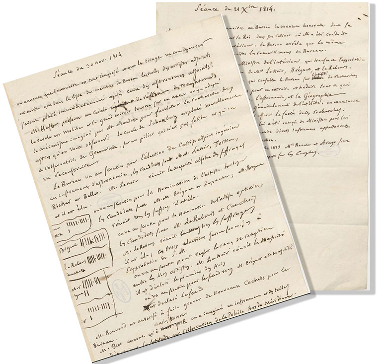 « Sur le rapport qui nous a été fait, par notre ministre secrétaire d'Etat de l'intérieur, des services nombreux et importans qu'ont rendus aux sciences et aux arts les sieurs Lerebours et Bréguet, le premier par ses découveries et par les perfectionnemens qu'il a apportés dans la construction des instrumens d'optique et de mathématique; le second, par la supériorité qu'il est parvenu à donner à l'horlogerie française, el entr'aulres aux montres marines; voulant témoigner à ces deux savans artistes la cas que nous faisons de leurs talens et de leurs lumières, nous avons ordonné et ordonnons ce qui suit;