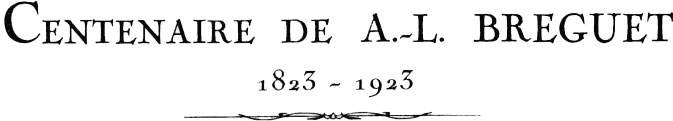A French translation of this important work of over 300 pages, including many illustrations, has just been published in connection with the celebration of Breguet's centenary, and it is a remarkable fact that it has become the privilege of Englishman to give the French nation its standard work on the life and achievements of this eminent Frenchman, whose watches are still regarded as marvels of skilled craftsmanship, which is not being reproduced in the present day.