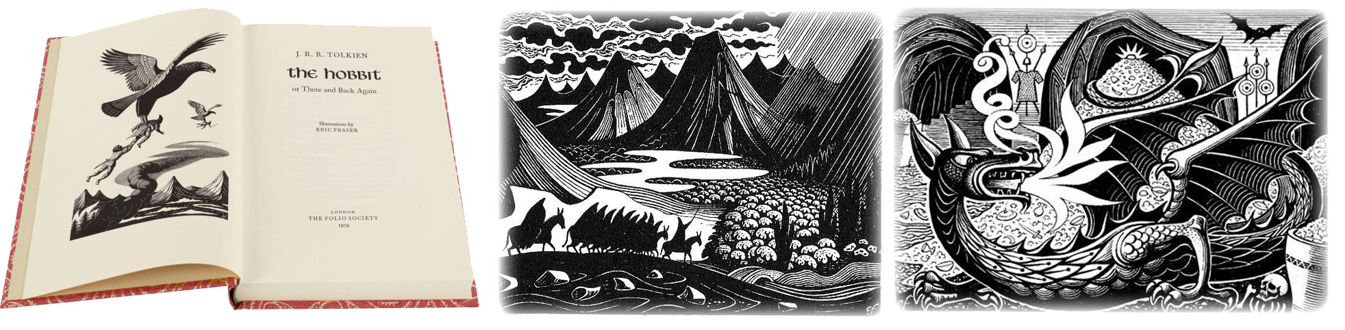 Eric Fraser's book illustrations include: Complete Works of Shakespeare (Collins, 1951), Ovid's The Art of Love (Limited Editions Club, 1971) and the Folio Society editions of J. R. R. Tolkien's books The Lord of the Rings (1977) and The Hobbit (1979).